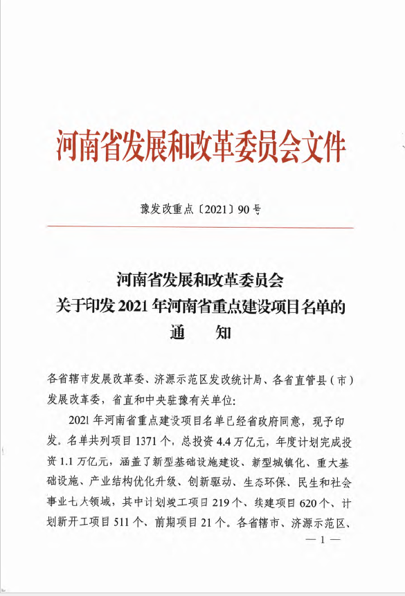 近日,河南省發改委發布2021年河南省重點建設項目名單,名單共列項目1371個,總投資4.4萬億元,年度計劃完成投資1.1萬億元,涵蓋新型基礎設施、新型城鎮化、重大基礎設施、產業結構優化升級、創新驅動、生態環保、社會民生七大領域。其中,明泰科技電子材料產業園項目榜上有名。